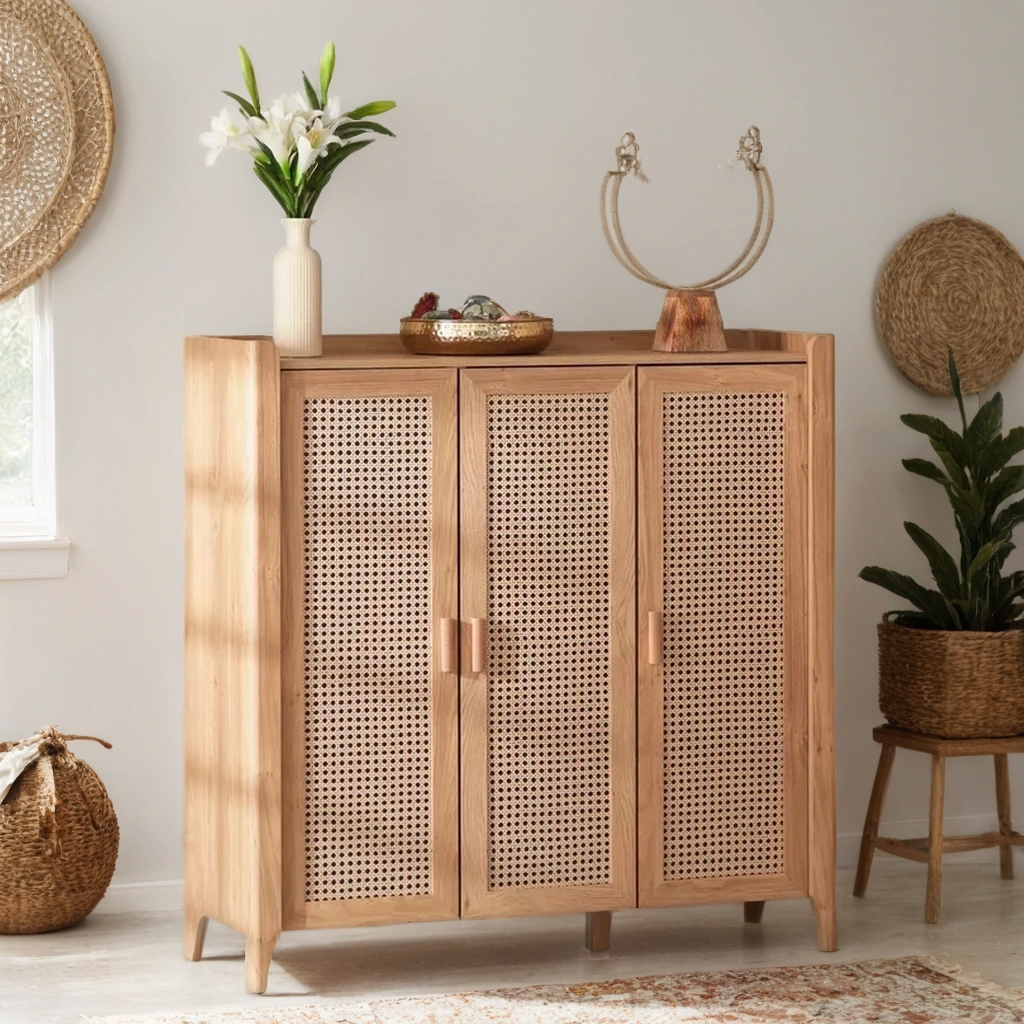 Frances Rattan 3 Door Mint Sideboard,Mango Wood Furniture