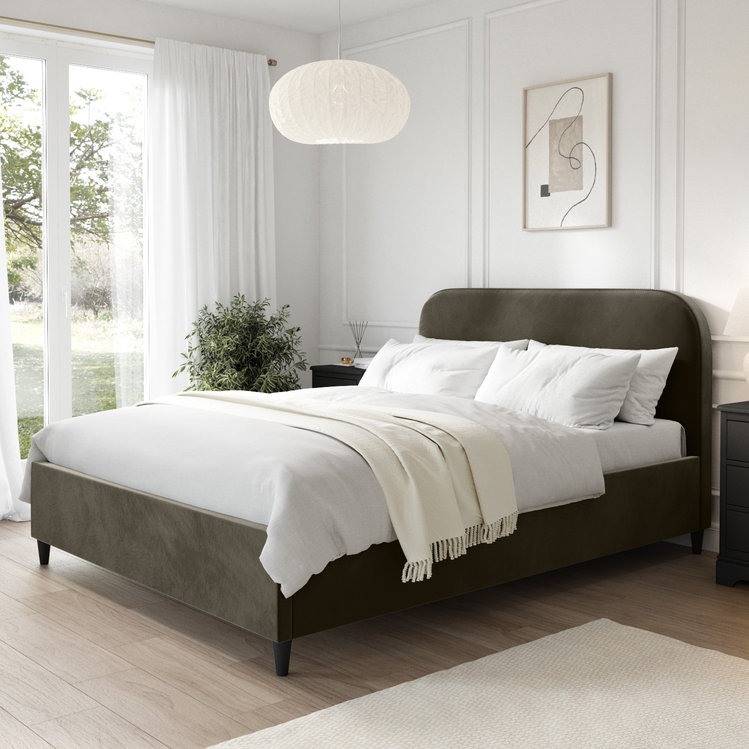Khaki Green Velvet King Size Bed Frame