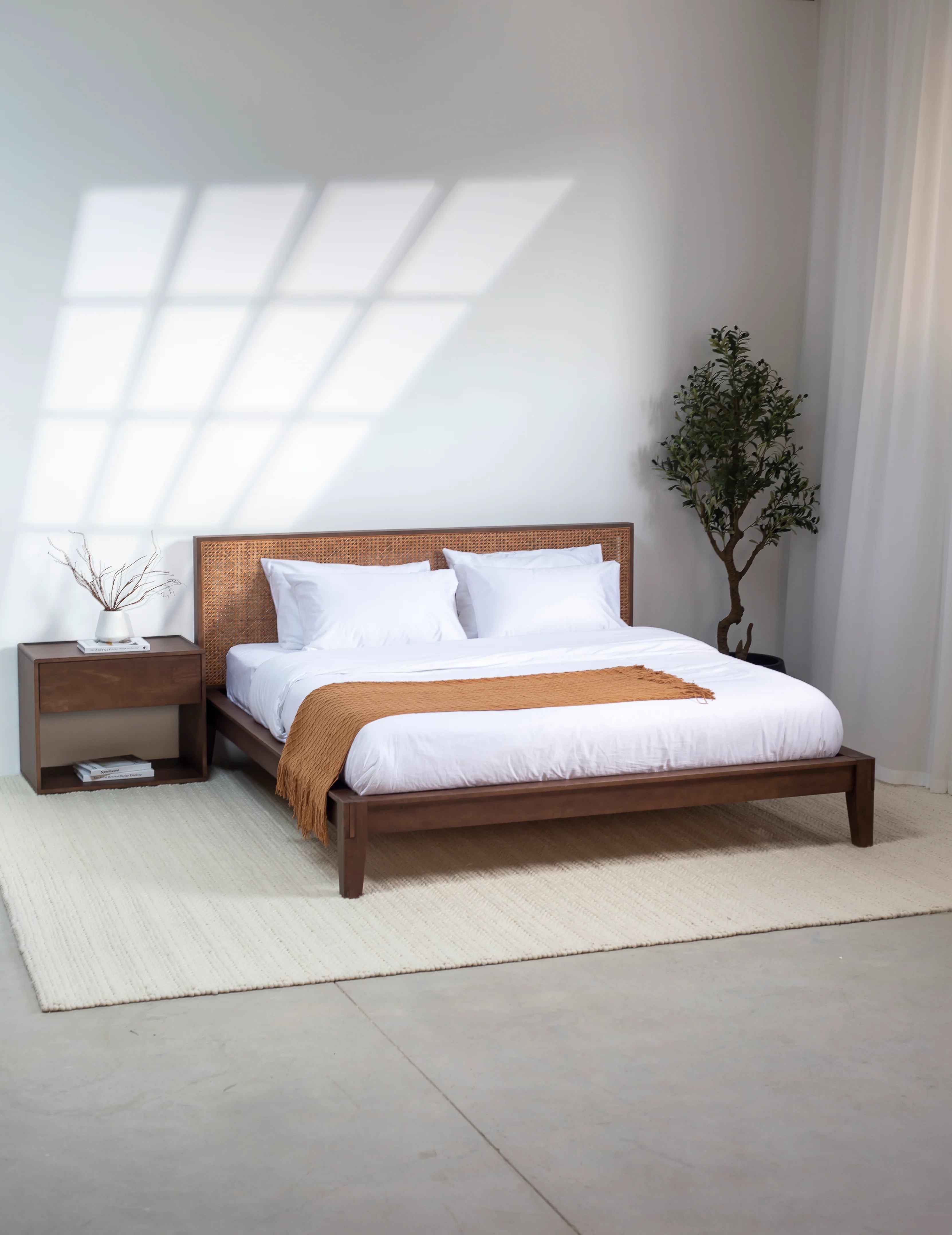 Joinery Rattan Dark Wood Bed