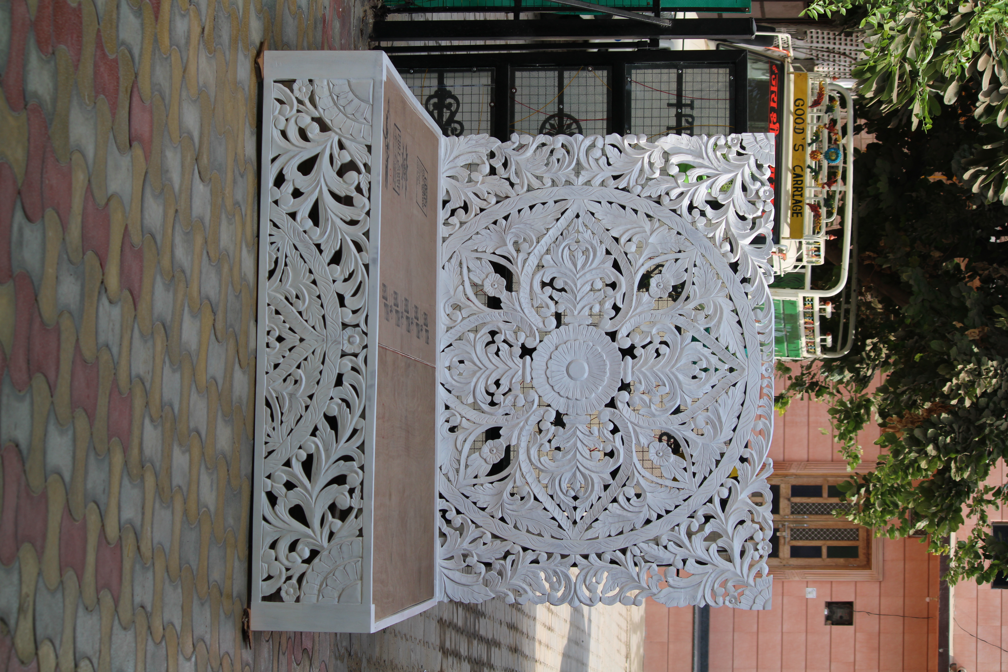 Mango Wood Fully Carved Bed ,White Color