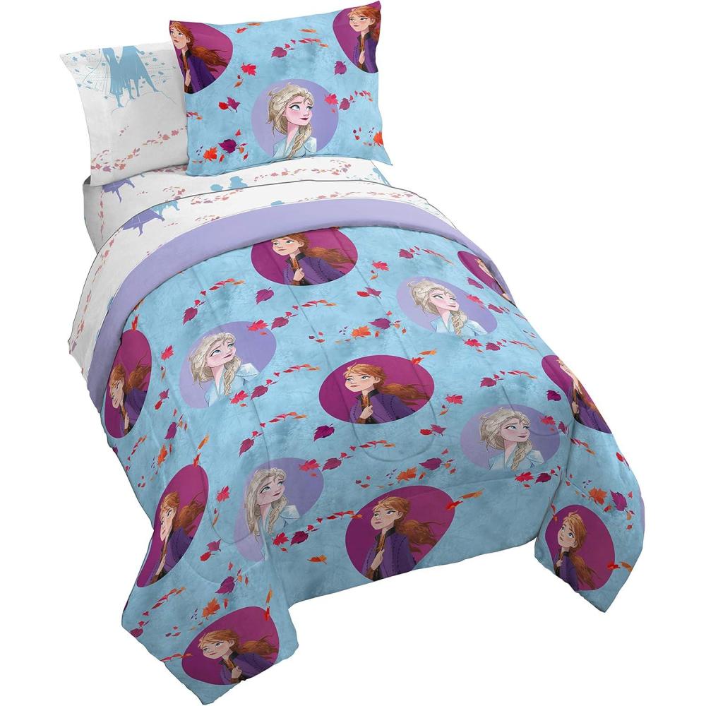 Disney Frozen 2 Sister Dots 4 Piece Twin Bed Set – Includes Reversible Comforter & Sheet Set – Super Soft Bedding Features Elsa and Anna – Fade Resistant Polyester (Official Disney Product)