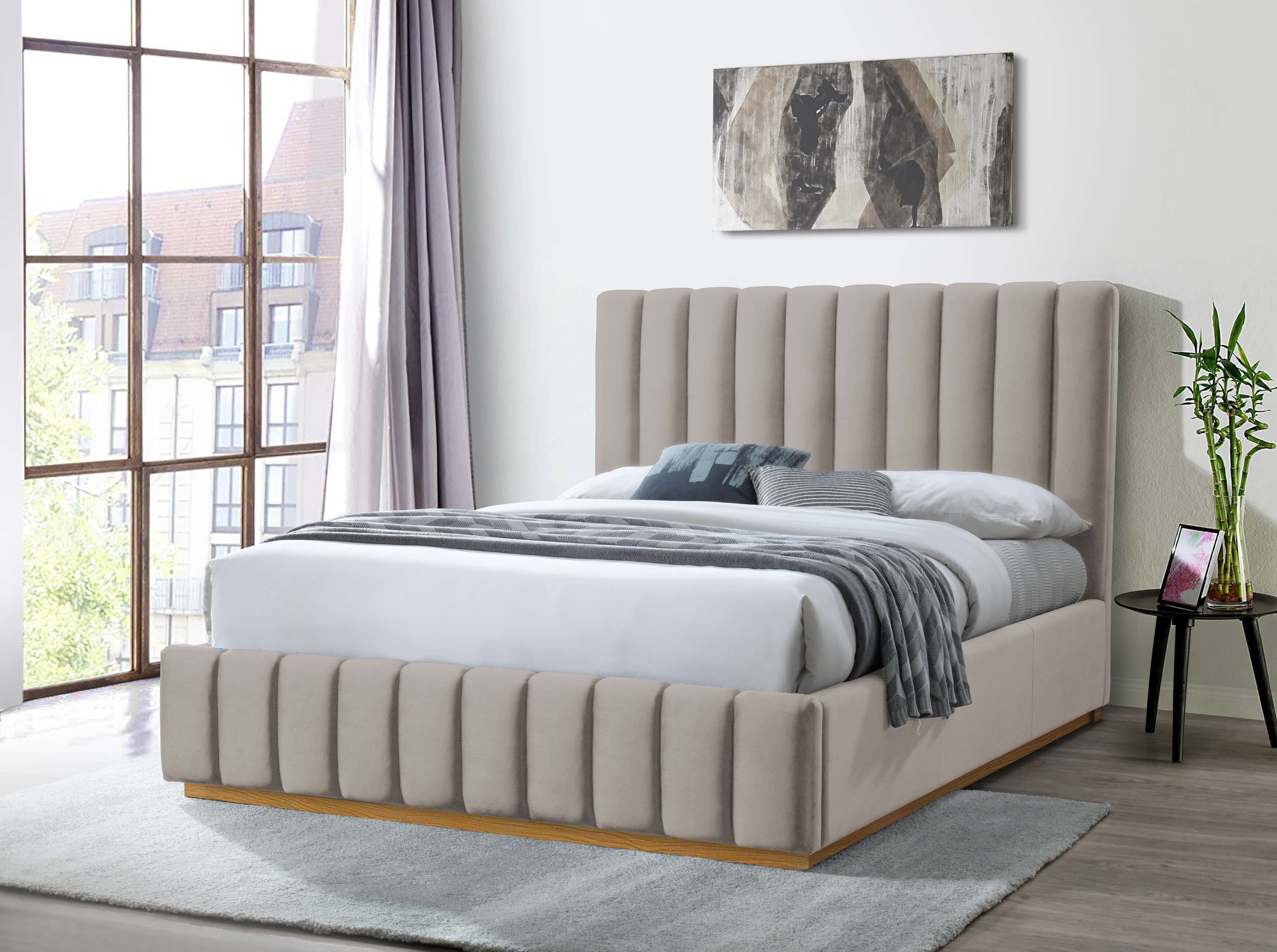 Liberty Velvet Bed Beige Queen Gas Lift